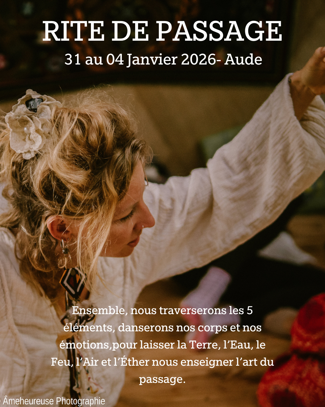 et renaître dans le vivant — à travers la danse, le yoga, le Body-Mind Centering (BMC), les rites ancestraux, le chant, la méditation et la célébration.